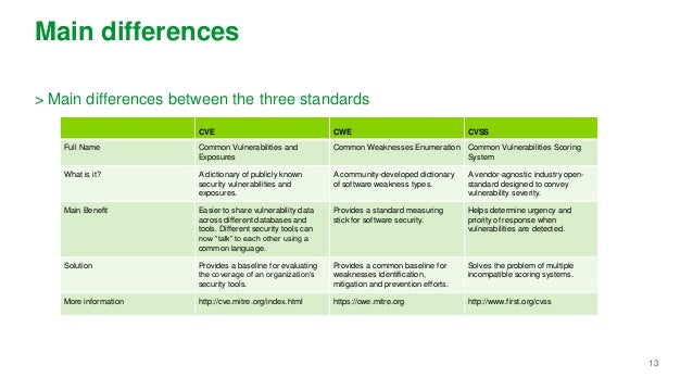 The partnership between CVE and CWE is crucial. A particular vulnerability (CVE) may be a result of some sort of common weakness (CWE). For example, some sort of buffer overflow (CWE) could lead to be able to an arbitrary code execution vulnerability (CVE).